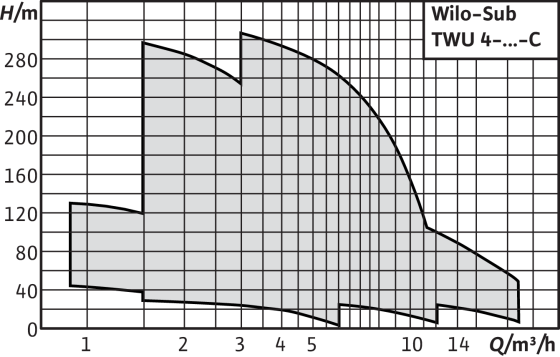 Wielostopniowa pompa głębinowa z promieniowymi lub półosiowymi wirnikami o budowie segmentowej. Wbudowane zabezpieczenie przed przepływem zwrotnym. Wszystkie części mające kontakt z medium są wykonane z materiałów odpornych na korozję.